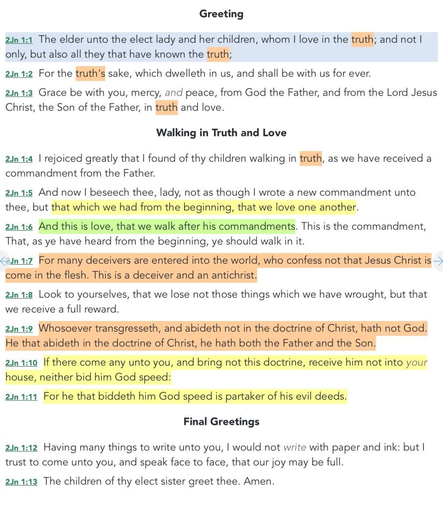 I have not been able to capture the actual highlighted text for you but here is a screenshot. 2 John…KJV