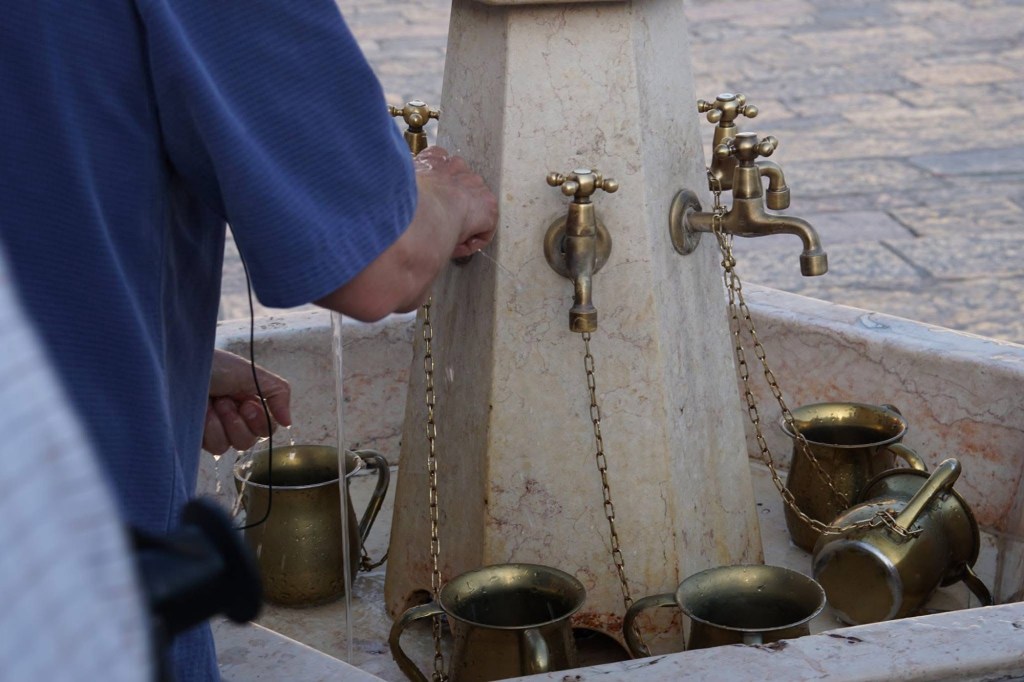 On our trip to Israel years ago, when we visited the Prayer Wall at the old Temple we saw men washing their hands as described.
